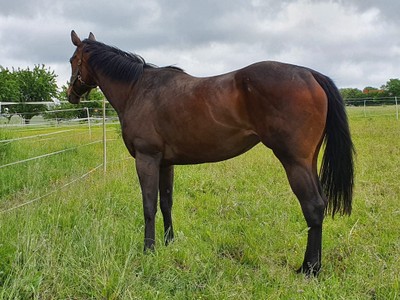 Pearl kam zu uns als ein schwerer Schlag hier alle sprachlos zurücklies. Orana starb bei der Geburt ihrer Tochter ganz plötzlich und unerwartet. Diese Lücke kann man nicht schließen aber Pearl war wie ein Wink des Schicksals. Ich habe selten ein sanfteres Wesen erlebt. Im Gestüt Ezean geboren als Tochter des Jahrhunderthengstes Areion lief sie erfolgreich auf den bedeutendsten Rennbahnen Deutschlands. Mehrfach siegreich und mit einer körperlichen Qualität ausgestattet die nicht zu toppen ist. Sie wird hier im Reitunterricht eingesetzt und hat bereits ein wunderschönes Stutfohlen von Amistoso gebracht. Jeden Tag bin ich dankbar für dieses wundervolle Wesen hier bei uns.