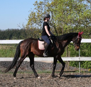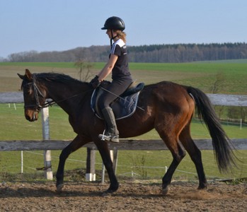 Sie befand in der Ausbildung zur Piaffe und Passage und läuft Dressur gerne auch auf Kandare. Beim Springen hat sie viel Spaß. Wegen einer Verletzung am Hinterbein wird sie nicht mehr voll eingesetzt. Sie ist kein Pferd für jedermann und fordert jedem Reiter viel Motivation ab. Wie alle unsere Pferde ist sie mit der Arbeit am langen Zügel vertraut und auch darin ein gutes Lehrpferd. Am Liebsten allerdings ist sie im Gelände unterwegs und da auch gerne mal zügiger, was auch keine Schwierigkeit für ihr Bein darstellt.