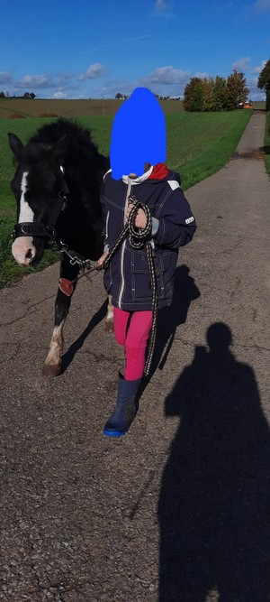 Sie ist eines unserer Pferde das wir auch zu öffentlichen Auftritten heranziehen. Sie geht zuverlässig mit unzähligen Kindern auf dem Rücken oder auf Martinsumzügen oder als Begleitpferd bei Kinderdistanzen.