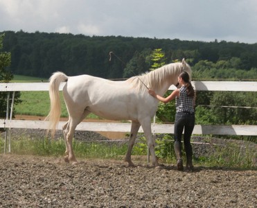 Seit vielen Jahren bilden wir Pferde aus. Unser Ziel ist es verlässliche Partner für Sport und Freizeit in Zusammenarbeit mit den Besitzern zu formen. Die Pferde werden an der Hand und unter dem Sattel schonend und mit viel Geduld und Ruhe ausgebildet. Die Basis hierfür ist immer das Lob, nie die Strafe und so lernen die Pferde auf entspannte Art und Weise ihr neues Aufgabenfeld kennen.