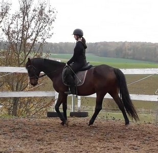 Sie befand in der Ausbildung zur Piaffe und Passage und läuft Dressur gerne auch auf Kandare. Beim Springen hat sie viel Spaß. Wegen einer Verletzung am Hinterbein wird sie nicht mehr voll eingesetzt. Sie ist kein Pferd für jedermann und fordert jedem Reiter viel Motivation ab. Wie alle unsere Pferde ist sie mit der Arbeit am langen Zügel vertraut und auch darin ein gutes Lehrpferd. Am Liebsten allerdings ist sie im Gelände unterwegs und da auch gerne mal zügiger, was auch keine Schwierigkeit für ihr Bein darstellt.