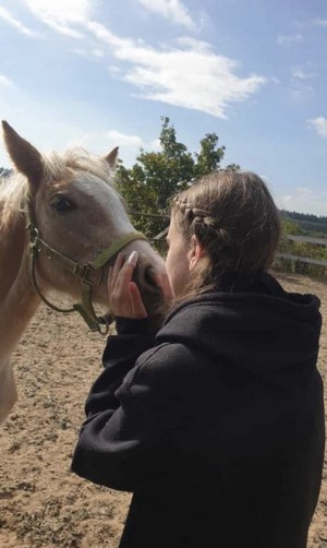 Hope kam mit einer Skoliose zur Welt. Die Entscheidung Sie zu kaufen und hier als Therapiepferd aufzunehmen war sofort klar. Wir haben auch alle unserer Besonderheiten und so nehmen wir sie wie sie ist und schauen was sie gerne arbeiten möchte. Jeden Tag freuen wir uns diesen Sonnenschein bei uns zu haben.